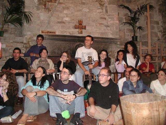 La foto ritrae un gruppo di fucini e fucine in un momento conviviale serale durante una delle settimane teologiche del 2001. Nell’immagine si riconoscono – tra gli altri – Elena Tarquini, Lisa Moni, Antonio Forte, Stefano Vettor, Maria Amelia Anderlini, Emanuela Cascone. Se riconosci altri volti scrivici a redazione@fondazionefuci.com